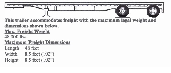 **Please note: The maximum freight dimensions and weight shown below each trailer are approximate and should be wed as a rough guideline for planning, not for making precision loading calculations. Actual loadable freight weight & dimensions vary from trailer to trailer and are based on the specs of the actual trailer & semi-tractor utilized.
